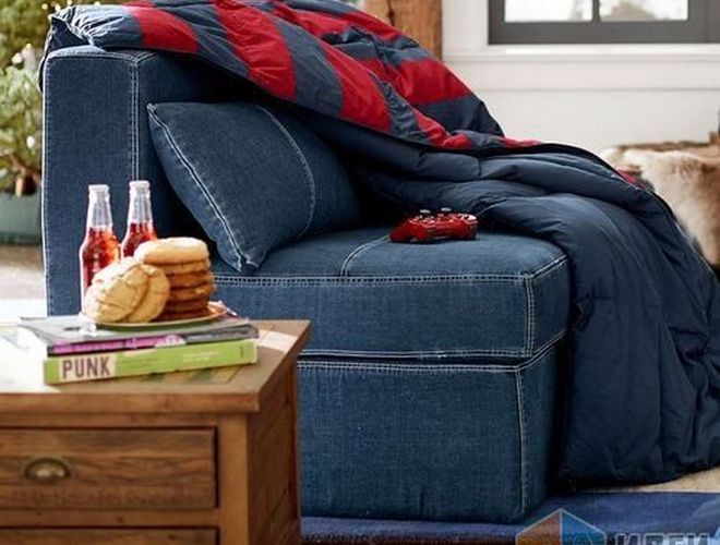 Сфера применения джинсовой ткани достаточно обширна, от одежды и аксессуаров до применении в мебели. При чем в современном мире стало модно делать мебель в джинсе, как мягкую (популярностью пользуются панно-пэчворк, сшитое из лоскутов, декоративные подушки-думки), так и элементы интерьера (тумбы, кровати, люстры).